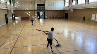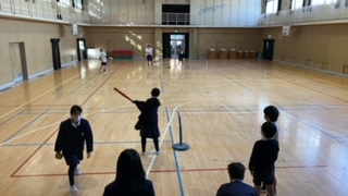 Tボールで打ったボールをキャッチ。