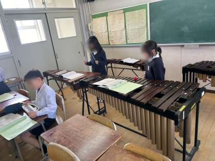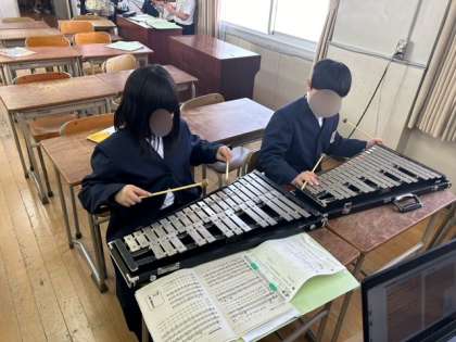音楽では、合奏をしています。