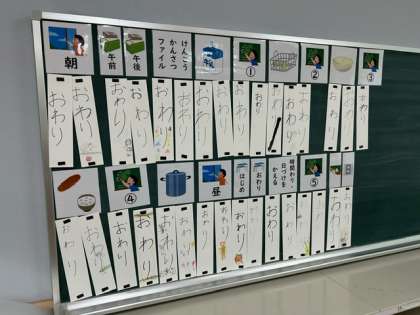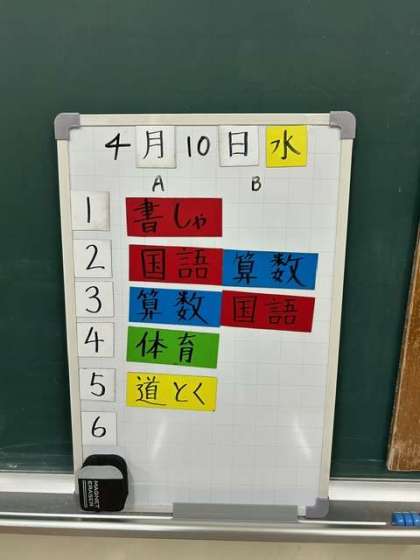 黒板はピカピカに、明日の時間割もきれいにしてくれました。