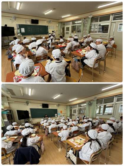 給食時間では、苦手な食べ物がある児童もがんばって食べていたり、「おいしい!」と言っておかわりをしたりする児童も多く見られました。