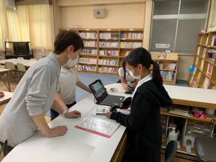 昨年度の経験を生かして、放送原稿の読み方、本の貸出、返却の仕方を教えてくれました。今年度からの子も安心して活動できそうです。