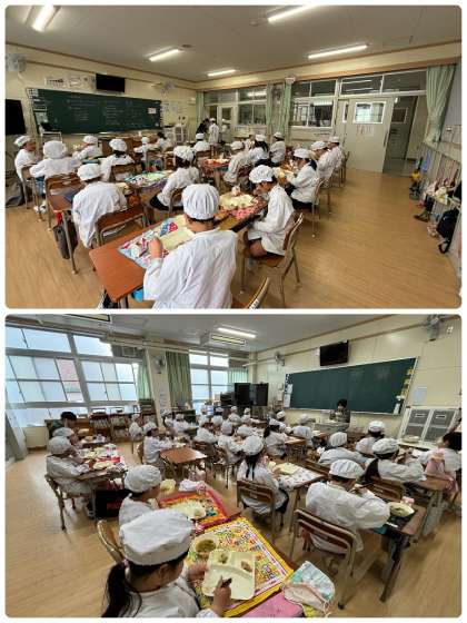 ・給食当番は、協力して安全に運んだり、盛り付けを工夫したりしましょう。