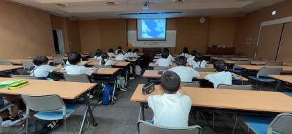 社会科の学習をより詳しく知るために、きづいたことや分かったことをビデオを見てたくさんメモを取っていました。この後の工場見学が楽しみな様子です。