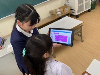 1年生は、答えの部屋をタブレットで撮影します。