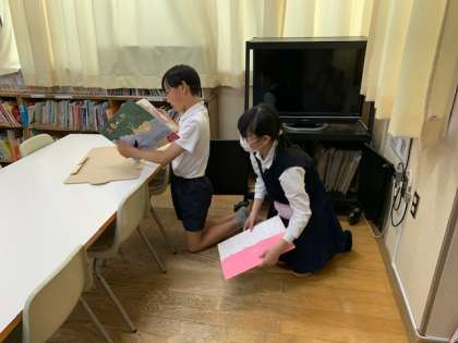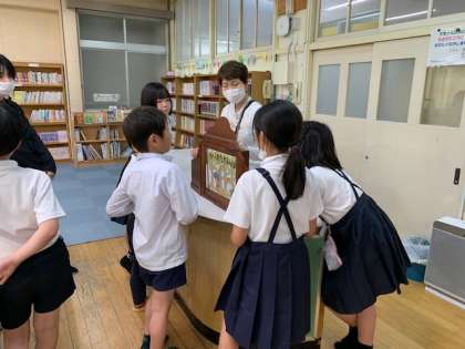 5月末に、各学年に紙芝居の読み聞かせをしにいきます。