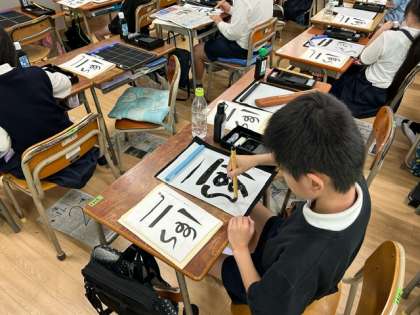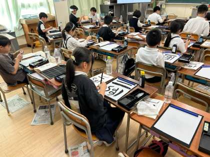 穂先は左斜め上を向くようにというポイントとともに、横画やはらいなどの練習をしました。