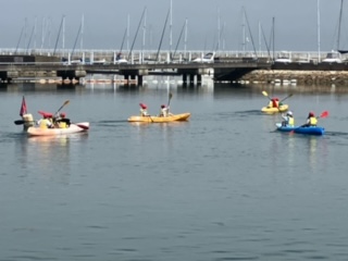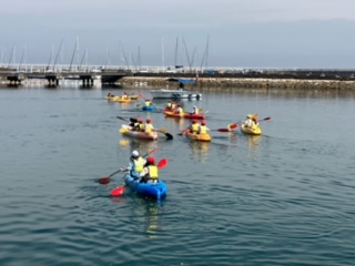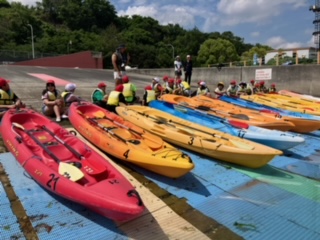 二人1組でタイミングをそろえてパドルをこぎます。