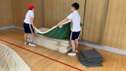 終わった後は、二人1組になり、マットを片付けています。
