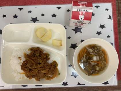 今日の献立は「タコライス」「もずくのスープ」「焼きじゃが」でした。
