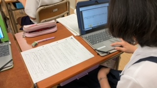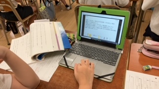 物語の内容をワークシートで整理し、それを元にあらすじを考え、発表ノートにまとめました。