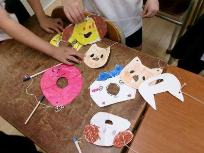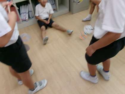 アイデアいっぱいの紙けん玉をみんなで作りました。完成した紙けん玉だ楽しく遊びました!