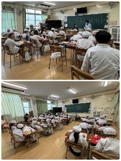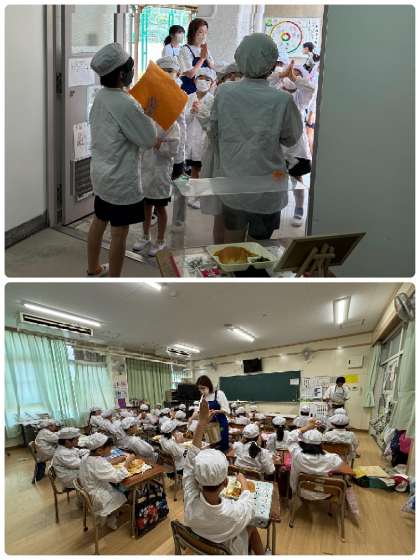 カレースパゲッティは、スパイスがきいたカレー味で、甘みと酸味のあるトマトやベーコン、たまねぎ、ピーマンなどが入ったボリューム満点のスパゲッティでした。どのクラスも大好評でおかわりをする児童が多くいました。