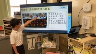 完成した作品の見どころを発表ノートにまとめ、全体の場で紹介しました。