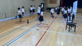 目を閉じて片足立ちでだれが一番長く立ってられるかな?