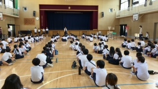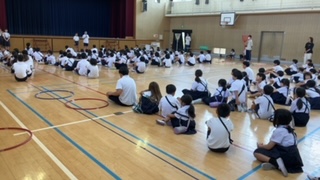 児童会のメンバーが感想をのべ、今里子どもまつりが終わりました。