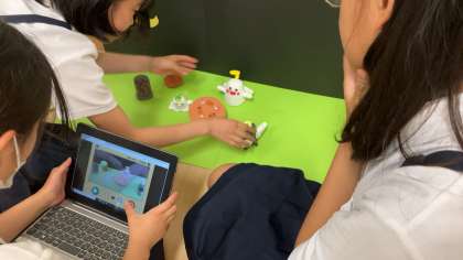 コマコマというアプリを使って、オリジナルキャラクターを用いてアニメーションを作りました。