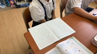 コンパスと分度器を使って、合同な四角形をかくことができました。