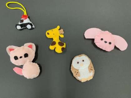 今日はマスコットの仕上げです。自分の思った通りに仕上がってきて、「可愛い!」と言いながら、楽しそうに作っていました。