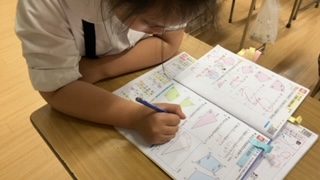授業でならったあとに計算スキルの問題に取り組んでいました。