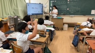 わり算をして確認したあと、デジタル教科書のフラッシュ問題を解いていきました。