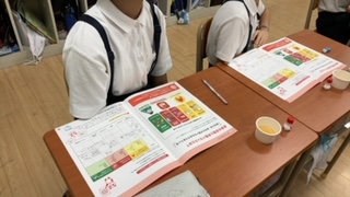 給食献立表を見て、3つの栄養バランスに分けてみたら、バランス良く分けられました。