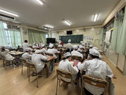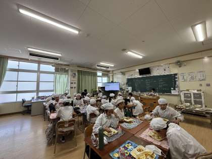 チキンカレーライスは、鶏肉が主材のスパイスがきいたコクのあるカレーライスで、ラッキーにんじんも入っていて、おかわりをする児童がたくさんいました。