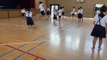 四年、五年、六年、児童会の四チームに分かれて、8の字とびの回数を競い合いました。