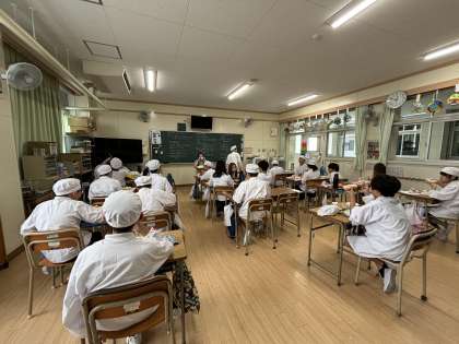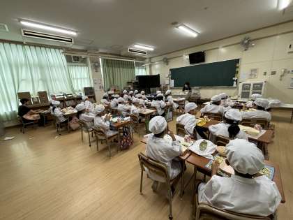 さんどまめとコーンのソテーは、コーンの甘みがアクセントになっていて、さんどまめが苦手な児童でも食べやすい味つけでした。
