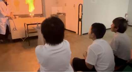 火を使った様々な実験を見て思わず「おぉー」と声をあげて見ていました。ものが燃えるのには酸素が必要だということを学びました。
