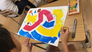 何かに見立てて、どこで何をしているかを想像しながら、ネームペンやクレヨンで描きたします。