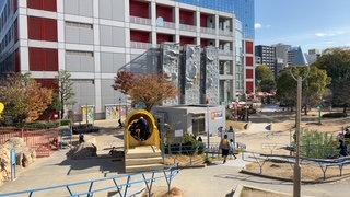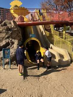 ?隣の扇町公園でお昼ご飯を食べ、遊具で思いっきり遊びました。