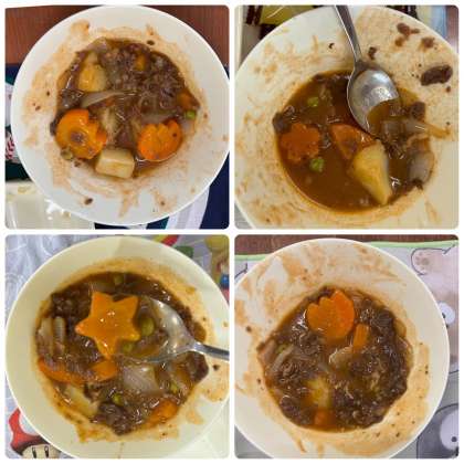 ビーフシチューは、牛肉やじゃがいも、たまねぎ、グリンピースなどが入ったボリューム満点のビーフシチューでした。じっくりと煮こむことで、コクがあり大好評でした。