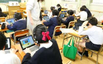 本日はなんと、メタバース(metaverse)を使って、仮想空間の中で子どもたちが交流しました。