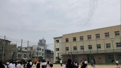 ちょうど今里小の上空を通り過ぎて、みんな大きな歓声をあげていました。