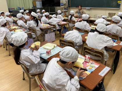 1年生は、学年休業開けの久しぶりの登校でしたが、スープスパゲッティもかぼちゃのマリネ焼きも全部残さず食べ切りました。