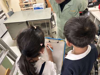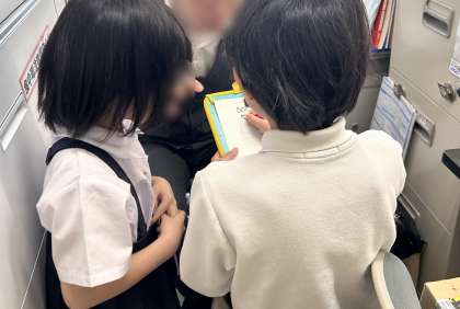 学校ではたらく人がどんな仕事をしているのかや、どんなことに気をつけてはたらいているのかを、インタビューにしに行きました。