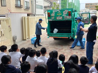 大阪市環境局の職員の方々からパッカー車について教わりました。