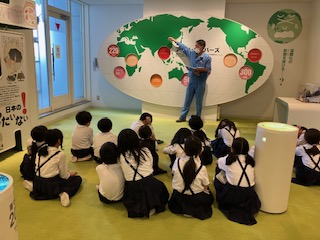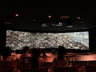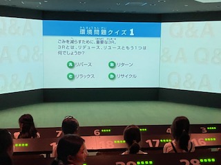 シアタールームでゴミについての問題が出ました。ボタンを押して答えていきました。