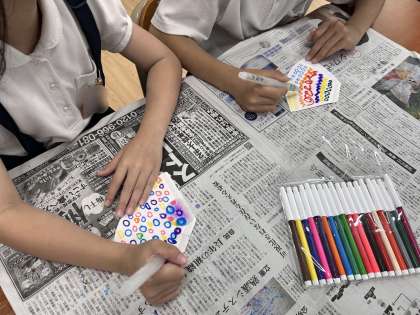 にじみの美しさに子どもたちは大喜び。世界にひとつだけの傘が完成しました。
