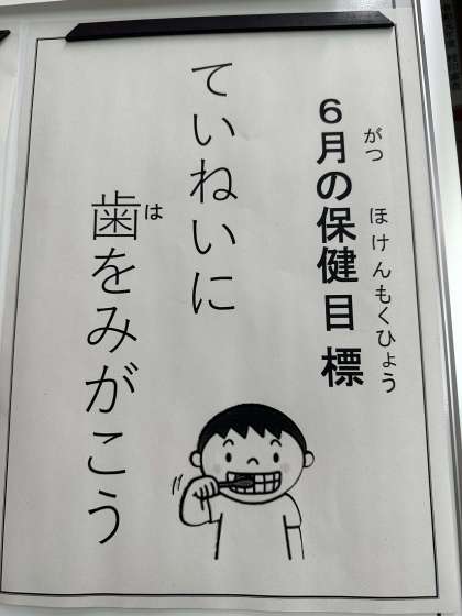 今月の保健目標は、「ていねいに歯をみがこう」です。