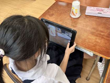 完成した作品は、タブレットで写真を撮って記録しました。楽しく不思議なアニメーションのような作品ができあがり、子どもたちは大満足の様子でした。