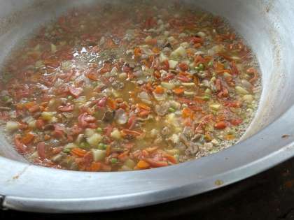 フレッシュトマトのスープ煮は、名前の通り生のフレッシュトマトを使用しています。玉ねぎ、人参、枝豆が入った色彩豊かなスープ煮です。トマトの酸味が鶏肉のうま味と合わさってとても美味しかったです。