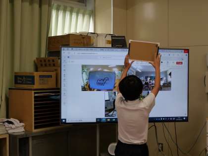 「絵しりとり」です。ホワイトボードに書いた「絵」を見て、しりとりをしていきます。さあ、うまくつながるでしょうか?