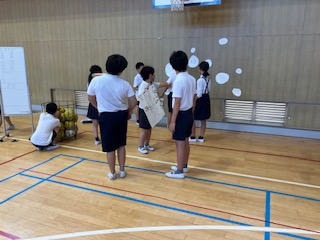 たてわり班のABで、お店役とお客役に分かれて練習しました。