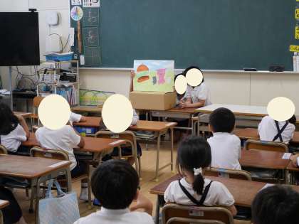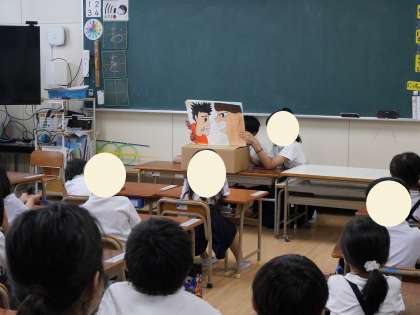 6年生が図画工作科の時間に作成した「紙芝居」を1年生にプレゼントしました。