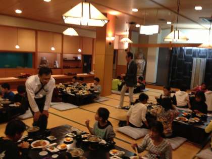 ホテルメ湯楽々での夕食です。おいしくいただいていま〜す。
