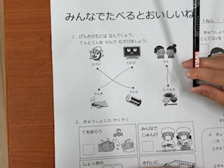 「みんなで たべると おいしいね」をテーマに給食の時のマナーを学習しました。
