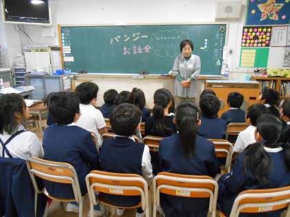 12月4日(水)朝の読書タイムにパンジーおはなし会のみなさんによる「読み聞かせ」を実施しました。各学級2つずつお話をしていただき、子どもたちは真剣に聞いていました。パンジーおはなし会のみなさんありがとうございました。