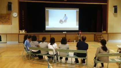 本日は、プール学習に向けて、心肺蘇生法(心臓マッサージ)やAEDの使い方についての研修会をPTAと合同で行いました。