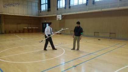放課後に、教職員でサスマタを中心とした防犯研修会を行いました。